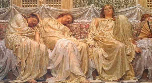 The shift towards furthering advancements in scientific research and discovery that took shape during the Victorian period reflected a growing interest in answering biological and scientific questions surrounding the body, mind, environment, and the interconnection of each of these mysteries. Curious exploration into different ways in which we process information, understand sensory input and output and identify the positionality of the self in relation to the world became a central theme portrayed in visual culture, with notions of beauty in the natural world and aesthetic instinct becoming an intrinsic part of the Aestheticism Movement. The blending of the scientific and the artistic was nowhere as evident as in the paintings of Albert Joseph Moore, where the dichotomies between the motor and physical processes of the body, sensory expressions, and consciousness and unconscious are investigated, interpreted, and visualized within an artistic medium.