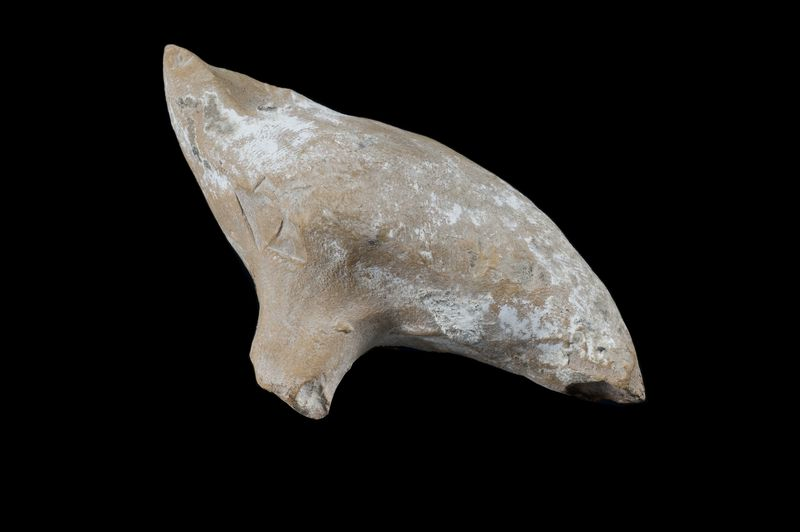 Figures 1 and 2 are embodiments of a distinct form of object agency, one that animates the spiritual landscape of Ancient Greece and underscores the dynamic interplay between objects, humans, and the divine. The Figurine of a Bird is a terracotta votive offering produced from a mold and likely functioned as an affordable and accessible offering given by a middle-class Greek citizen to a god. The object teeters between ephemerality and permanence, taking the concept of a sacrificial bird and rendering it in an eternal and immortal form–forever holding the attention and favor of the gods, compared to a fleeting animal sacrifice. Further, appropriation of an image of a bird parallels the lived experience of birds as beings capable of traversing territories–reflecting the action of moving from a space occupied by man to a space of the gods. There is also a double interaction produced in the invitation of touch, with the malleability and tangibility of the object relating to the natural condition of a bird through referencing its size, shape, and form, actively aiming to embody the sentiment and spirit of a bird down to its physical composition. This emphasis on touch and physical contact are points of consideration present in the compositional forms of both Figures 1 and 2. These sensory and physical properties facilitate contact, forming a connection that transcends the physical realm and reaches into a spiritual one.