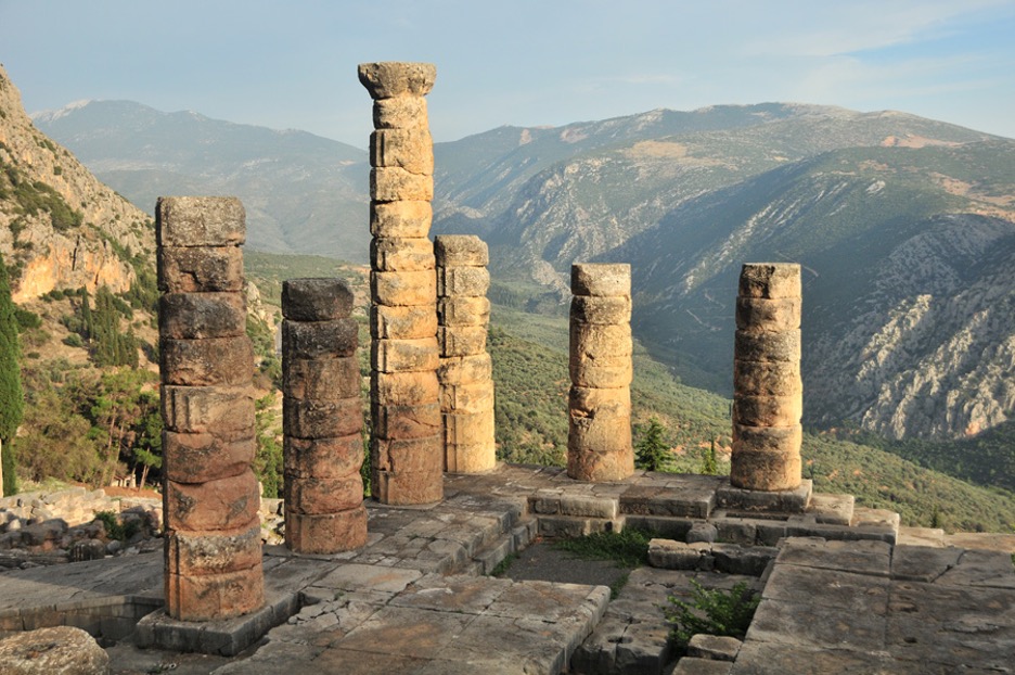 A sanctuary in Ancient Greece was a consecrated space. In these sanctuaries, the architectural program played a fundamental part in the purpose and meaning it held in the city, usually reflecting the needs of the community–allowing for variation and adjustment. The Sanctuary of Apollo at Delphi was a prominent panhellenic site because it was not under the direct control of any one city state, making it both a neutral asylum, safe from polis conflict and a site for competition between cities for the attention and favor of Apollo (Figure 12). Poleis–or polis, were city-states or independently governed units in Greece, and represented one of the ways that Hellenistic Greeks formed group identities. Each polis was often ruled by kings or elected officials that had their own system of government, taxation, and currency. Eventually, control of the sanctuary site was handed over to the Delphic Amphictyony–a group of individuals from neighboring city-states that joined together to administer and keep the site apolitical. Delphi’s officials and priests actively worked to maintain good relations with various city-states. This diplomatic effort helped to prevent Delphi from becoming embroiled in political conflicts. Further, the neutrality of the sacred space was attributed to priestly authority, as these deific figures maintained their independence and impartiality. Delphi’s wealth, derived from offerings, donations, and treasures dedicated to Apollo, allowed it to maintain its independence. This financial autonomy enabled Delphi to resist external pressures and influences, remaining an intermediary site that transformed objects brought from near and far into totems of exchange.